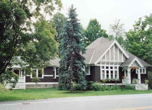 a 1907 Shingle Style community library on the Ausable River.